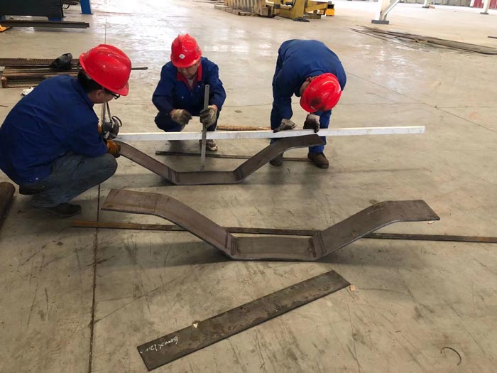 壓制這種鋼板需要使用較大噸位的液壓機。可以根據具體需求定制生產1500噸、2000噸、2500噸、2800噸、3000噸、3600噸、4000噸、4500噸等各種不同噸位的波紋鋼腹板成型液壓機,通過聯動墊板將活動橫梁剛性連接在一起,配合各自的供油閥或泵的控制,來保證滑塊的同步運行,從而壓制出相應的產品。
